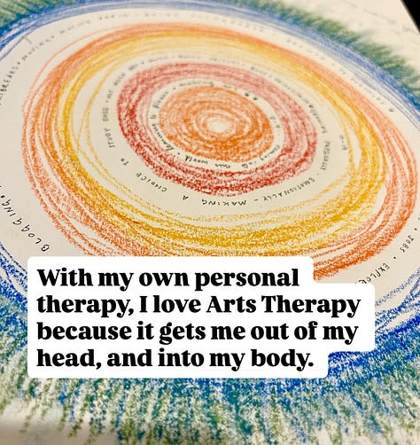 First up, some of you may know that since the start of 2023, I have been steadily working my way towards becoming an Arts Therapy Practitioner. After 2.5 years of learning, I’m so READY to put things into practice full time. While I will continue to offer group workshops in-person and online, I am also opening up slots for 1:1 art therapy sessions for adults (no art-making skills expected or needed).