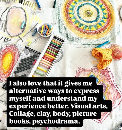 Allow me to explain a bit about why arts therapy appeals to me so much. Click through these images, or read here.